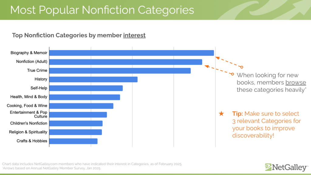 Click through on the images above to see more detail about the most popular Fiction and Nonfiction Categories that NetGalley members browse!