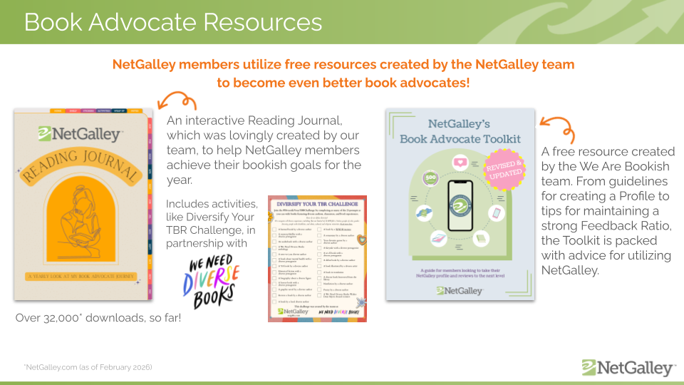 Free resources like the NetGalley Reading Journal and the Book Advocate Toolkit are intentionally designed to drive meaningful engagement. They help members track their reading, craft stronger, more thoughtful Feedback, and confidently share titles with their audiences. Additional tools, including Book Club Kits, give members ready-made ways to amplify the books they love.